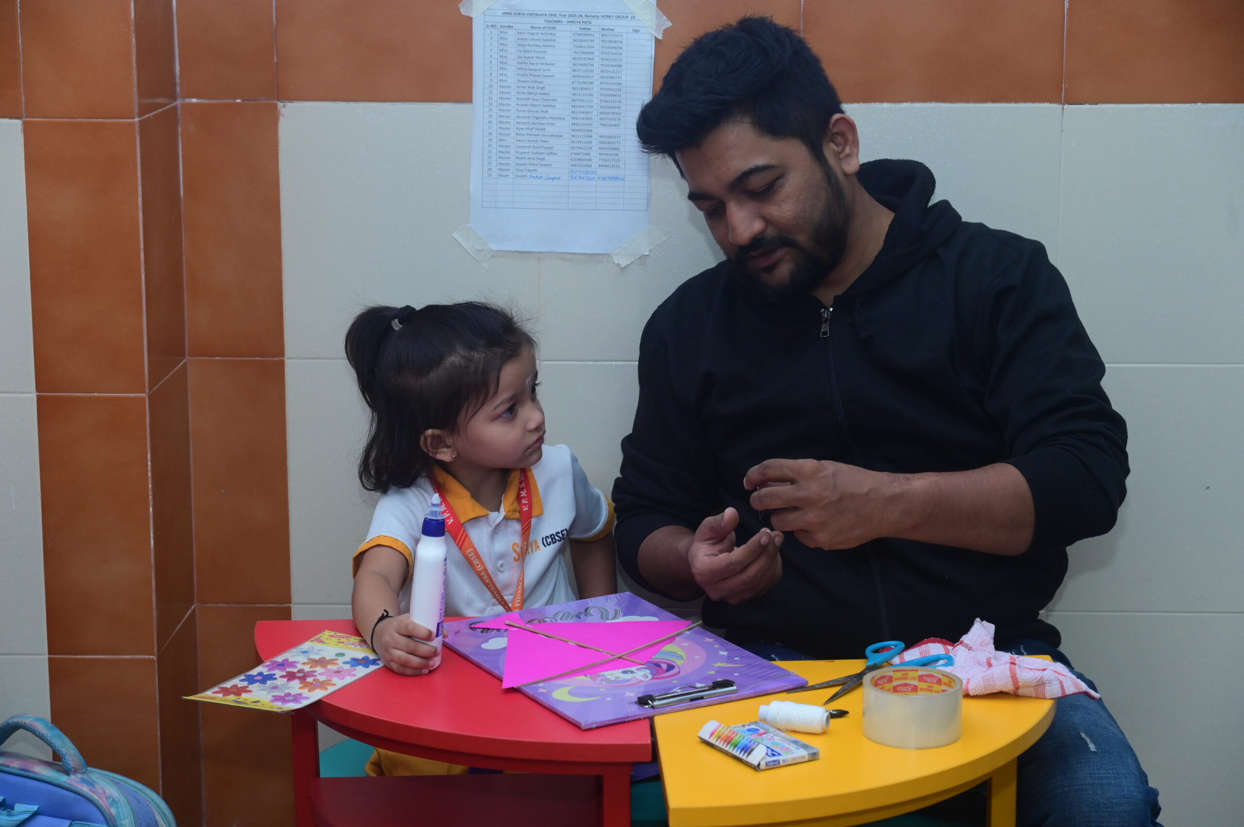 Little hands, loving guidance, and colourful kites. Celebrating togetherness through a joyful parent - child collaboration.